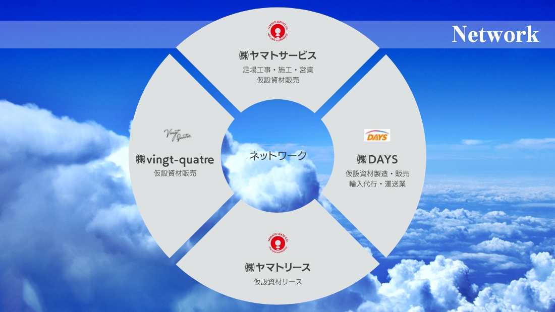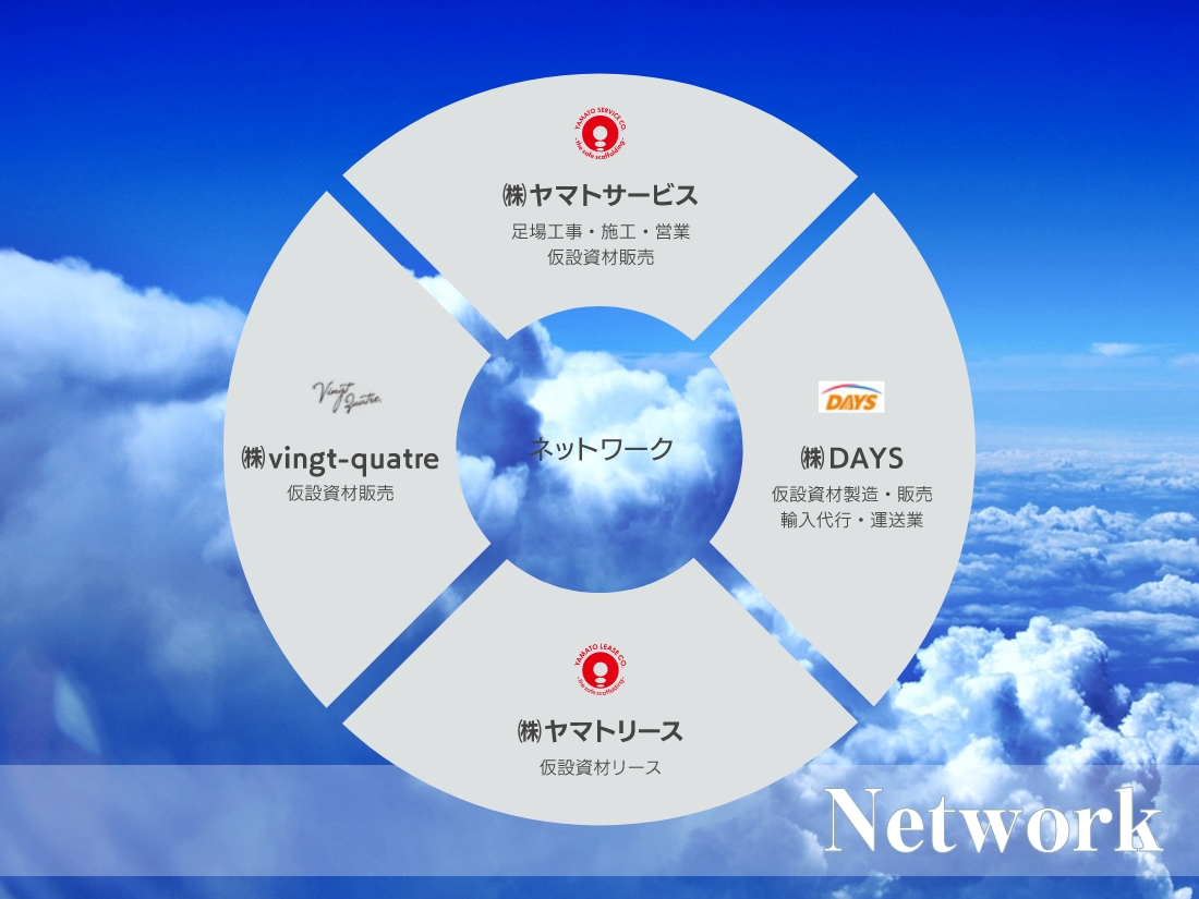 お客様が「必要なものを」、「必要なときに」、「必要なだけ」、ご提供出来るように、製造事業以外にも配送・施工・リースなど、多岐にわたるサービスを提供するネットワークサービスをヤマトグループで確立し、様々なご要望に柔軟に対応しております。
